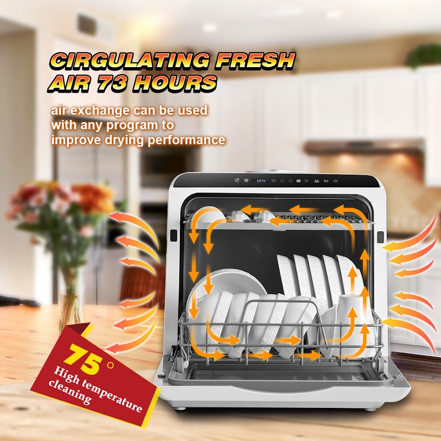 ps: All dishwashers are tested for water leakproof seal, there maybe some water left inside. Please run a cycle without dishes to dry it before using.