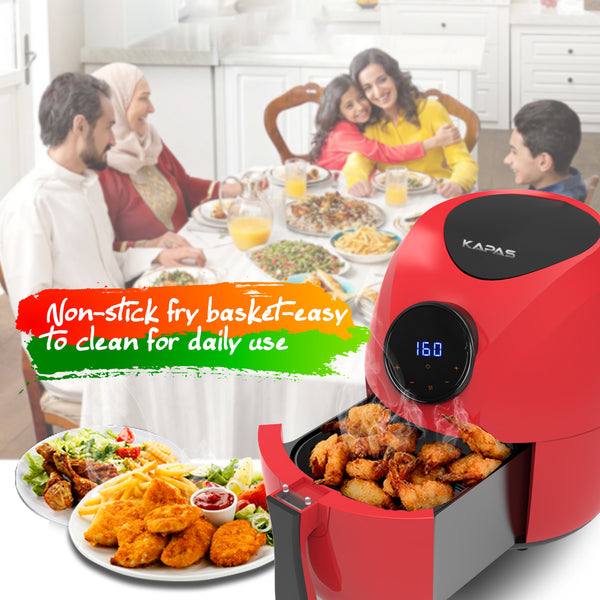 Crispy, golden goodness without the unwanted calories! Craving the irresistible crunch of your favorite fried foods? Now, you can enjoy guilt-free pleasure from the comfort of home with the Digital Air Fryer from Kapas. Using cutting-edge RadiVection 360° heat distribution technology, this powerful cooker churns out the same crispy exterior and juicy interior like a traditional deep fryer.