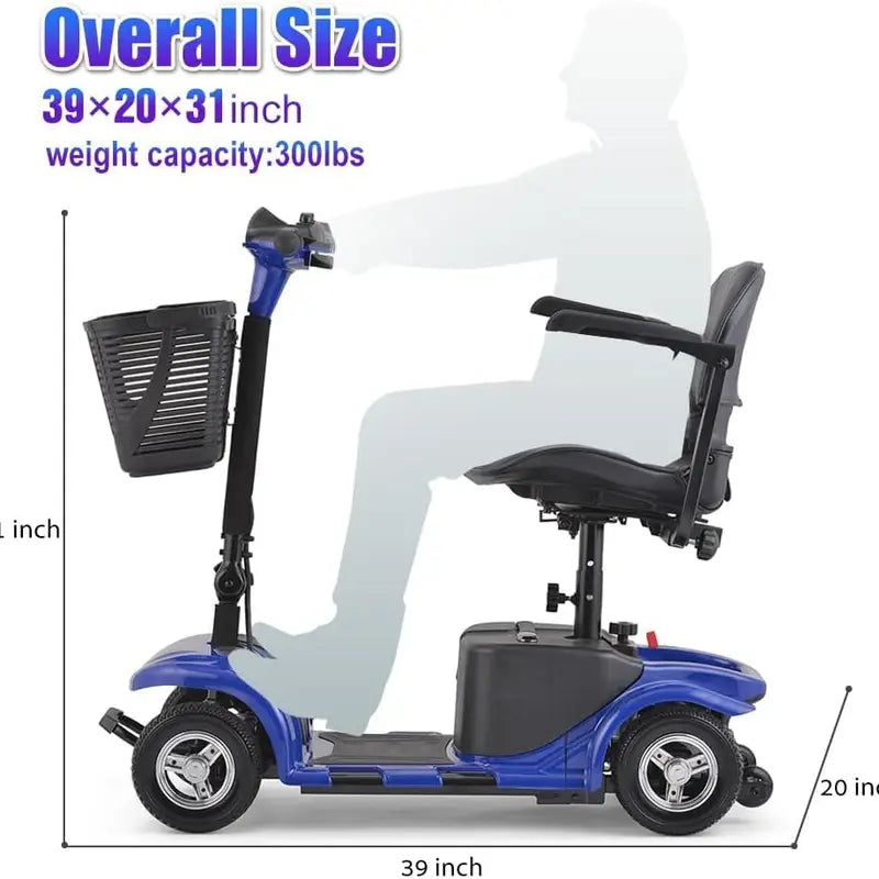 Electric Mobility Scooter for Adults, Senior, 4 Wheels Electric Powered Chargeable Device for Travel, Lightweight and Portable, with LED Headlights and Basket, Charger Included