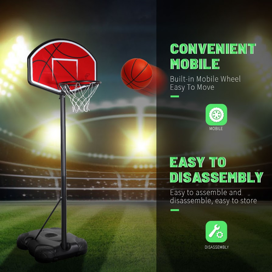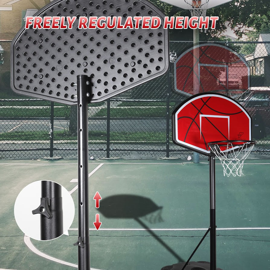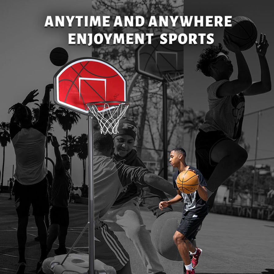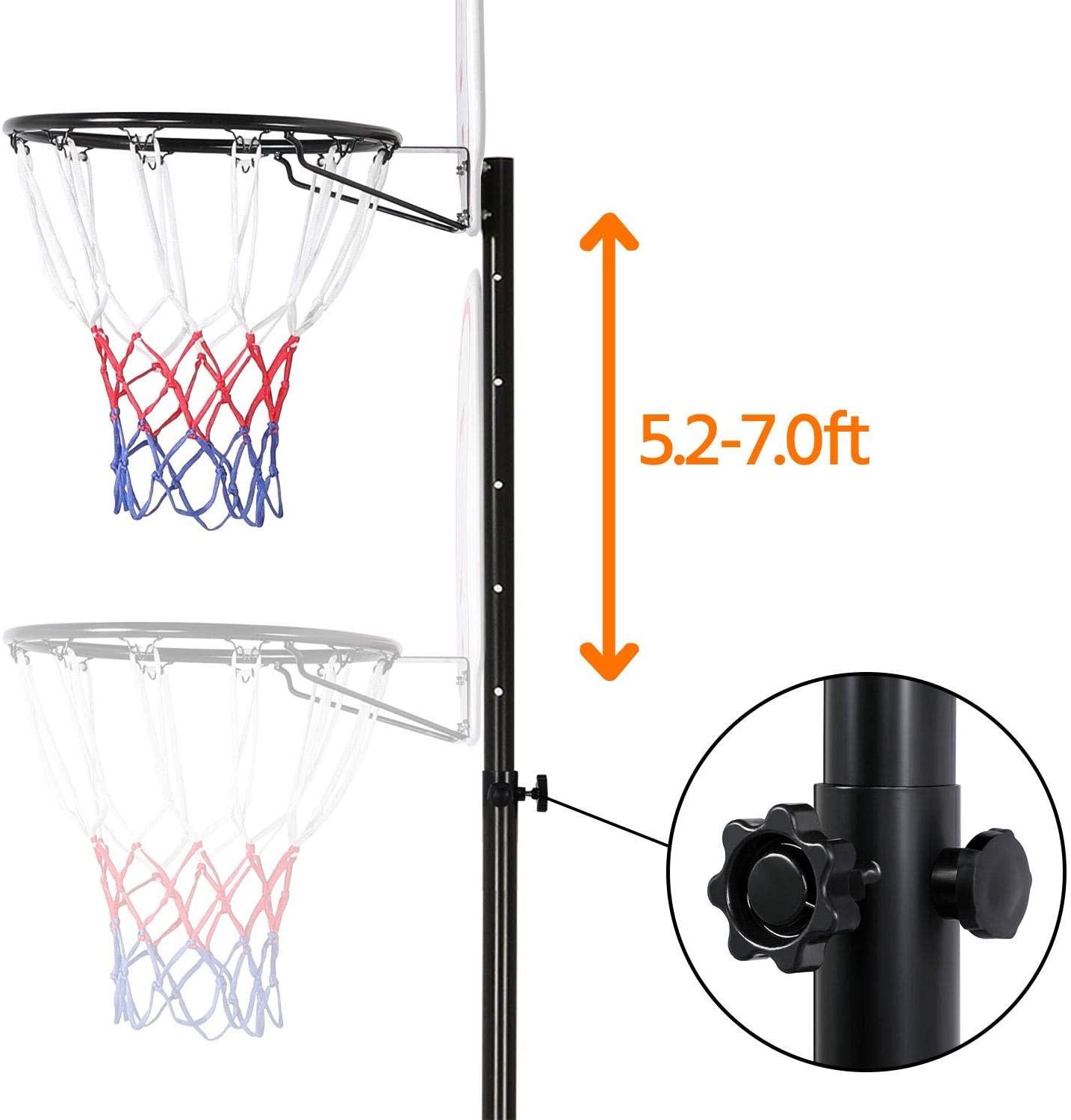 - 【Adjustable Height】 - The telescoping mechanism adjusts from 5.5 to 7 feet(no tool required).Let kids of different age ranges and skill levels enjoy the game on their own terms,ensuring that all ages can enjoy themself during the period of playing basketball.