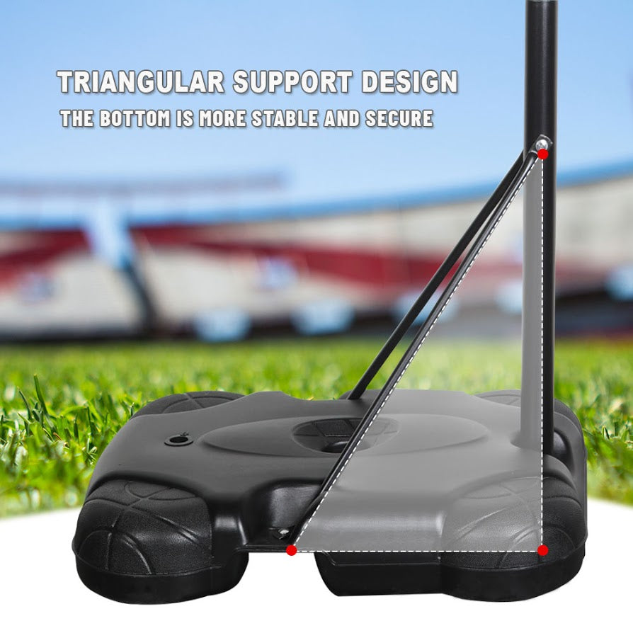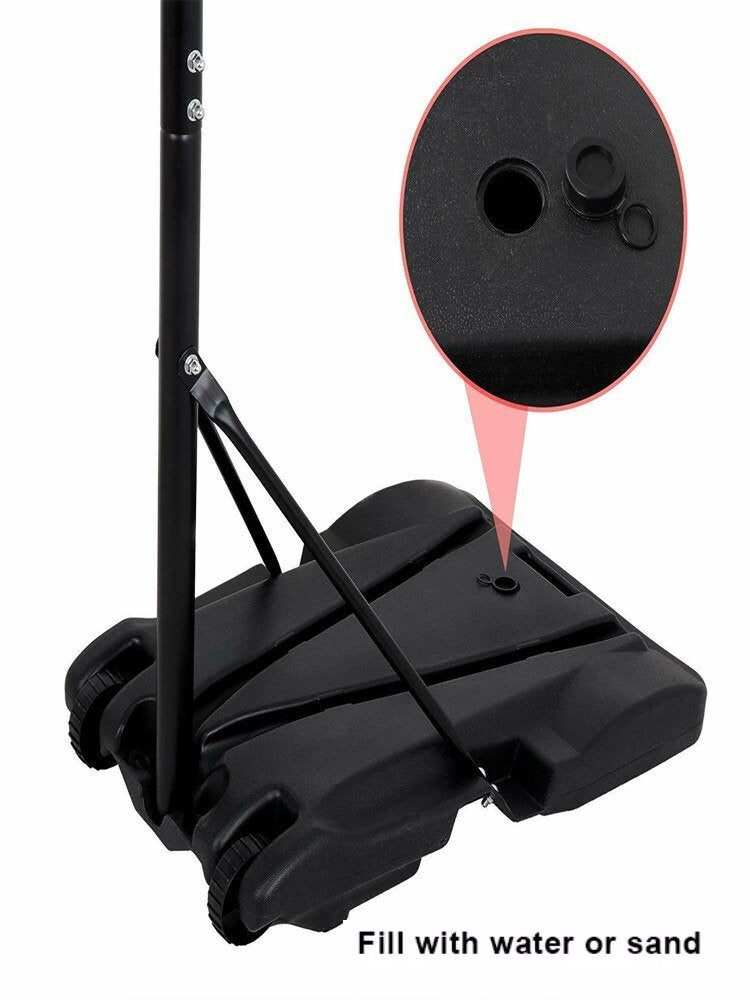 https://youtu.be/QHTo9558DH4- Solid Structure】 - Constructed of heavy-duty steel, high density polyethylene backboard, a solid steel ring and an all-weather nylon net,for superior strength and durability. 9.53 gallons base fills with water or sand, ensuring safety when kids play the big rebound or the dunk.