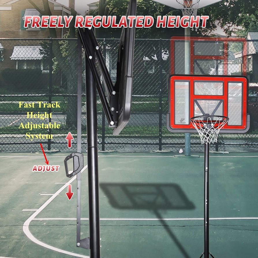FITPHER Portable Basketball Hoop, Adjustable Height Basketball Stand (7.5ft - 10ft) with PVC Backboard, Wheel and Ball Net for Kids, Youth, Adult Game (7.5ft - 10ft Height)