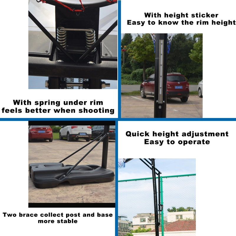 By selecting and using high grade steel, applying the most advanced welding technology and powder coating equipment, novel style and clear printing consists of first-class basketball systems. These leisure basketball systems are widely used in college campus, gymnasiums, field sports, some other public places and home yards. These products are various specifications and styles forming product line with advantages of weather-resistant, light, handy and convenient to operate.