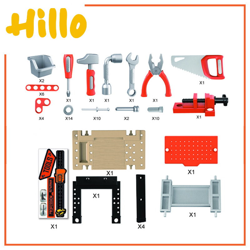 Hillo Professional Repairman 64 pcs workbench Tools Set Tool bench Pretend Play Educational Toys