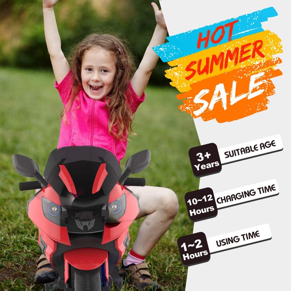 HOVER HEART Kids Electric Power Motorcycle 12V Ride On Bike (Hot Red)