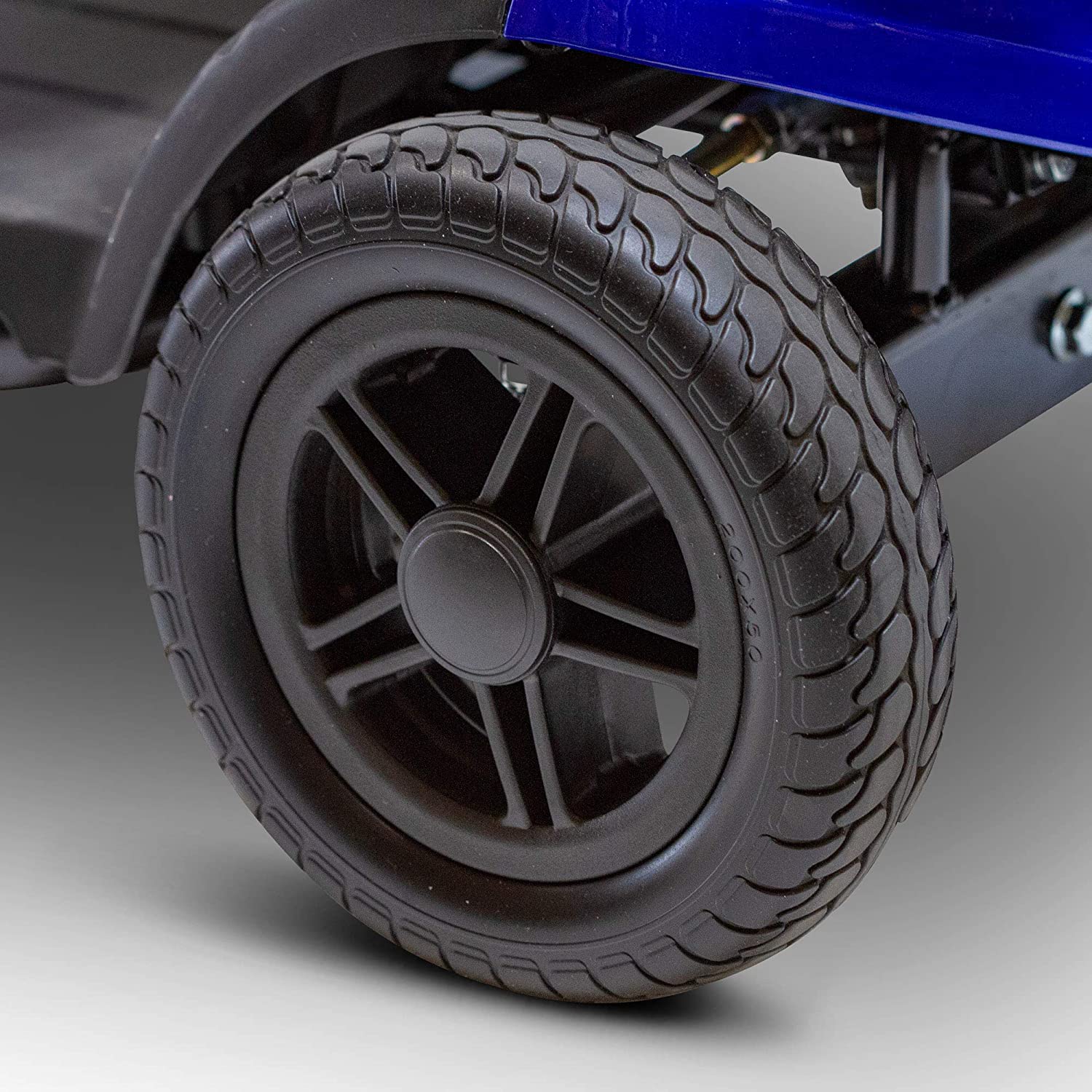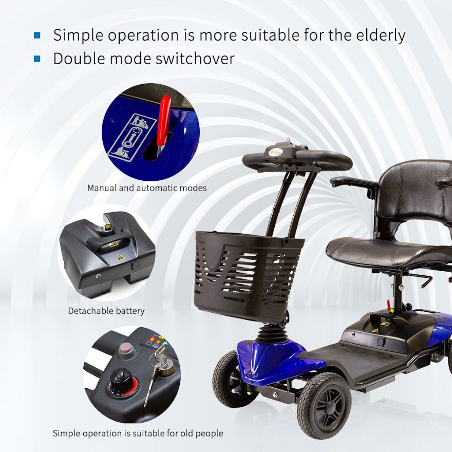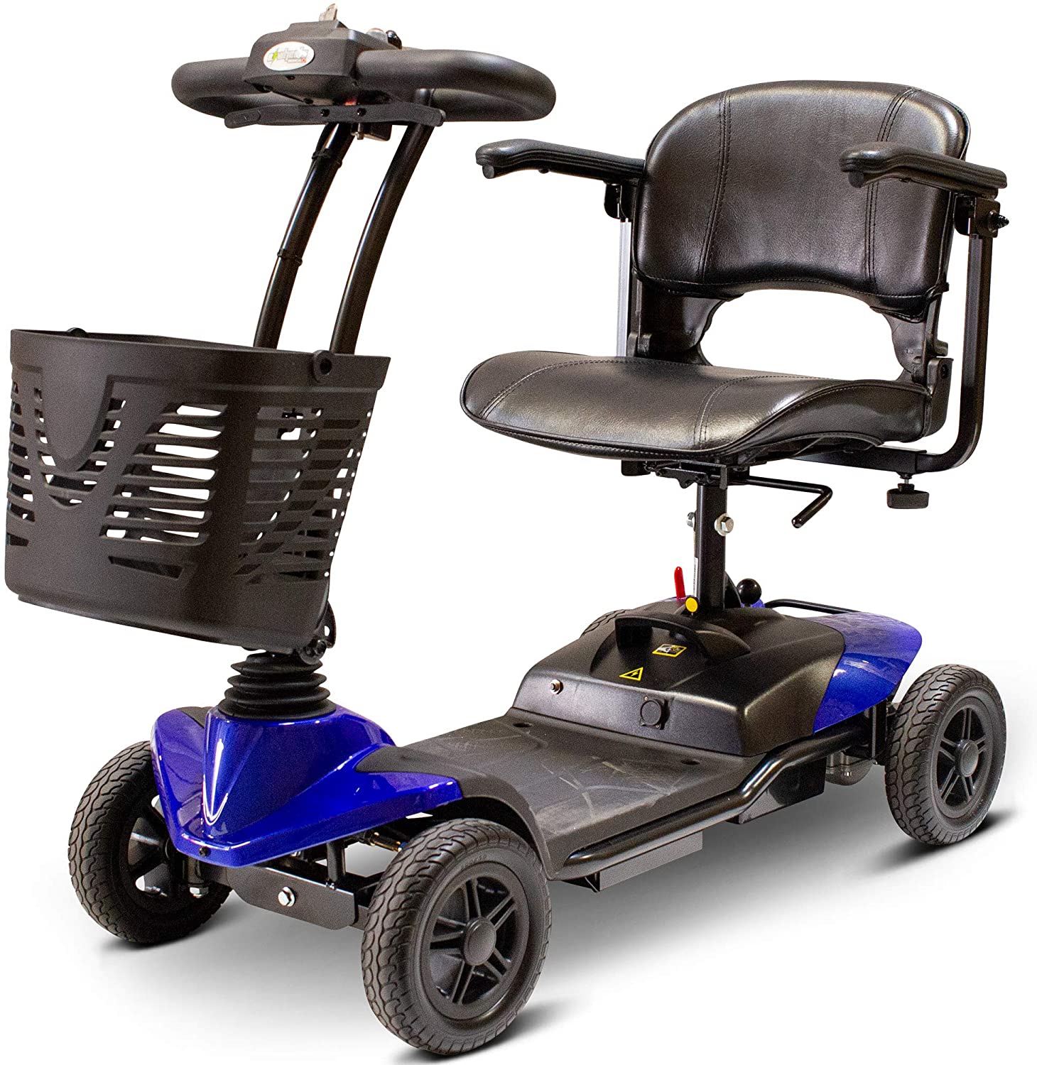 The Skrt RW-M35 4 Wheel Mobility Scooter can travel up to 9 miles which will keep you traveling all day! Equipped with puncture proof tires you never have to worry about the dreaded flat as you travel to your local store. The max speed is 4 MPH which isn’t lightning fast but is adequate and a very safe traveling speed. The RW-M35 lightweight travel scooter disassembles into five lightweight pieces with the heaviest piece only being 30lbs! When disassembled, this electric power portable scooter will fit easily in the trunk of most cars and all SUV's and vans. The removable front basket will hold all your essentials and light shopping. On top of all this, the lightweight RW-M35 4 Wheel Mobility Scooter is manufactured by Skrt who is a world class leader in mobility.