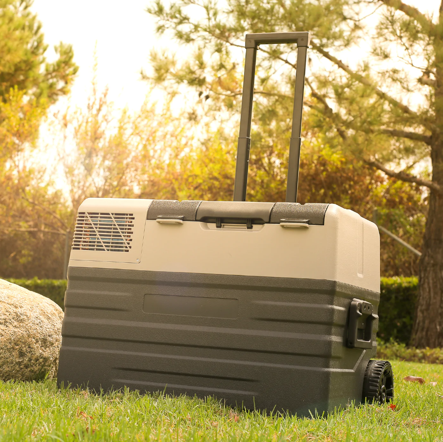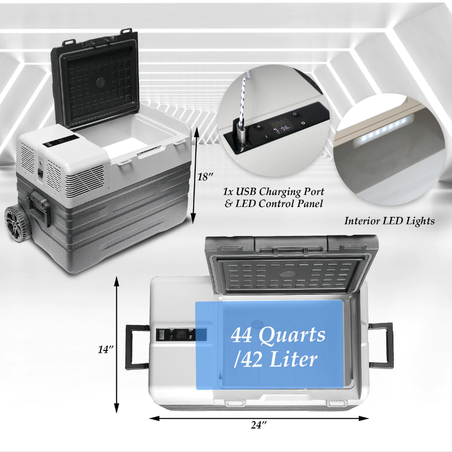 Portable Freezer Cooler, AC/DC Compressor Refrigerator Fridge with Trolley Wheels Suitable for Truck RV Boat Party Picnic Camping, 42 Liter
