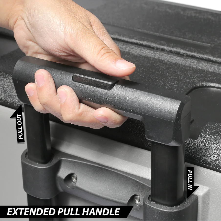 3 stage car battery protection system to prevent over drain the vehicle battery, Built-in trolley and solid wheels for easy moving, Strong, lightweight & heavy-duty plastic housing.